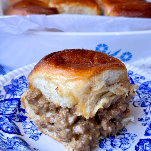 You may have grown up eating this appetizer without even realizing it. This old-fashioned party appetizer was often mixed up and served on small pieces of rye or pumpernickel bread. I remember seeing them around the holidays. Basically, it’s the same thing but on a slider bun. Hanky Panky sliders are perfect for any gathering, and they come together very quickly. Be careful though….they are super addictive!